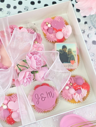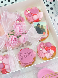 1 klein mini taartje (3 - 4 pers.) met 5 bijpassende cupcakes.